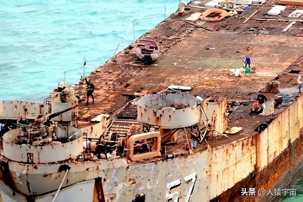 殊不知,菲律宾这艘破船已经坐滩26年,早已铁锈斑斑,不堪重负,船体严重侵蚀水体,被检测出释放铜、锌、铅、汞等重金属,严重污染仁爱礁周边水域,对珊瑚和海洋生物造成毒害,"坐滩"人员产生的生活垃圾和污水,未经任何处理,直接排入大海,包括废油、渔网、塑料瓶等,或采用焚烧的方式,灰烬落入海中,加剧了污染。2024年的调查显示,与2011年相比,"马德雷山"号周边400米范围内,海底生物萎缩程度高达87.3%,直接导致了海洋生物链的衰退。