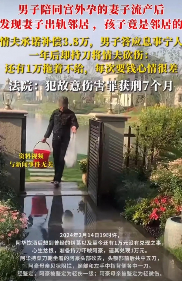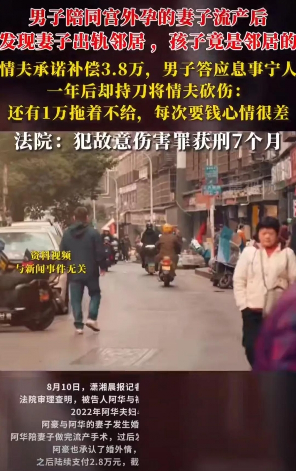 男子陪妻子做流产发现孩子是邻居的,要3.8万补偿反获刑?