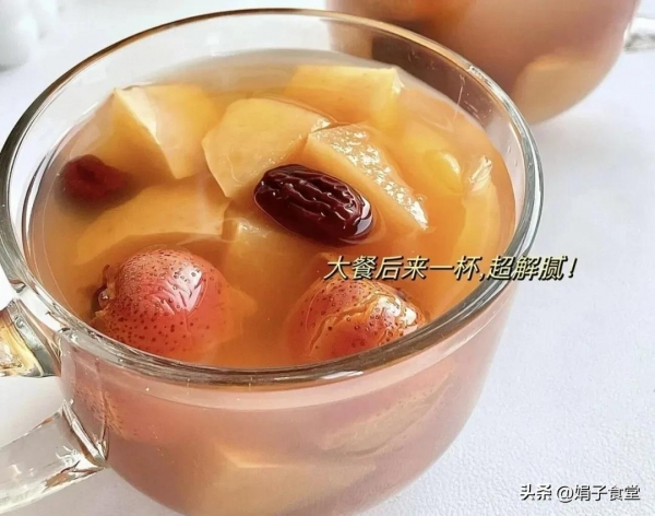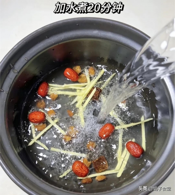这是一道经典的驱寒暖身、补气养血的食疗方,生姜可以温中散寒、红枣可以补中益气,红糖可以健脾暖胃,三者搭配,养阳又防寒,能够在大寒时节,帮我们快速驱散体内的寒气。