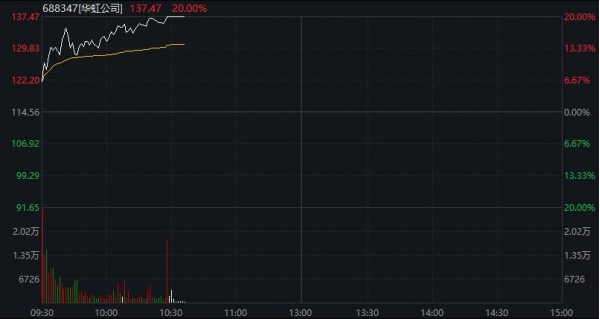 科创50指数涨5.8%。华虹公司涨20%涨停,中芯国际A股涨超8%。西部超导、芯原股份均涨超15%,芯联集成、中微公司涨超10%。