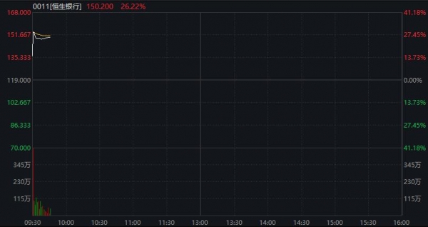 消息面,恒生银行在港交所公告称,汇丰银行建议以协议安排方式将恒生银行有限公司私有化。倘若计划生效,持有每股计划股份可获现金港币155.00元(扣除股息调整金额,如有)。