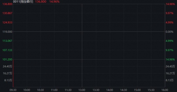 恒生银行跳空大涨15%,汇丰拟将恒生银行私有化,交易价值约2907亿港元。