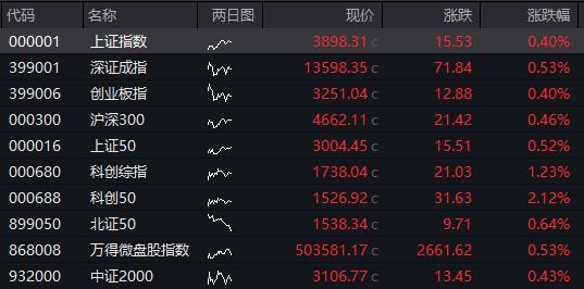 上证指数跳空高开0.4%,逼近3900点;科创50涨2.12%。