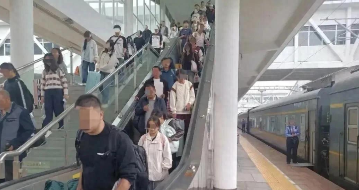 10 月 7 号上午 10 点来钟,湖北襄阳市谷城北站特别热闹,好多旅客都拎着行李赶车,准备趁着假期尾巴出行。人群里,一对年轻情侣脚步匆匆,他们要坐的是去汉口的 C9232 次列车,过了验票口,俩人没耽误,一前一后踏上了进站的自动扶梯,随手把带的行李箱搁在了扶梯的梯级上。