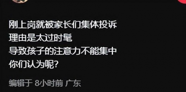 家长一着急,好多网友头一回站家长这边,他们觉得老师要是都按网红的审美打扮,学校风气就该乱套了,还有人说:老师得有威严,得让人觉得专业,不光课得教得好,穿衣服也得规规矩矩的,毕竟老师干什么孩子都跟着学。
