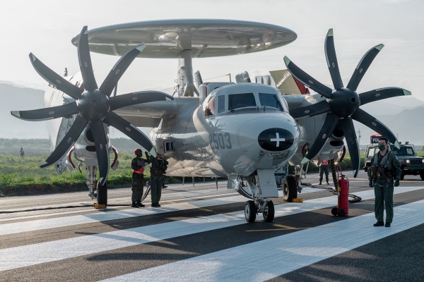 1993年3月,美国批准以9亿美元的价格售台4架E-2T预警机,这些飞机于1995年9月起陆续抵台;1999年,台当局又增购了2架达到"鹰眼2000"技术标准的E-2K,于2004年起开始交付,此外4架E-2T也在2010年起运回美国升级至E-2K标准,分别在2011年和2013年完成。1997年3月20日,机号为2503的E-2T夜航训练中发生意外,在没有放下起落架的情况下着陆,导致机身受损报废,后续以更换美方提供的一架全新机身得以修复;2022年11月25日,已经升级为E-2K的2503号再次于屏东基地发生意外,仍然是着陆时未放起落架,机腹擦地并冲出跑道,机身与机上电子设备均严重受损。