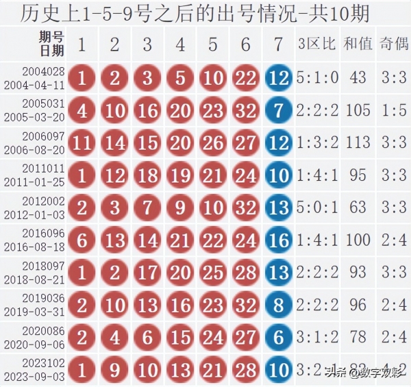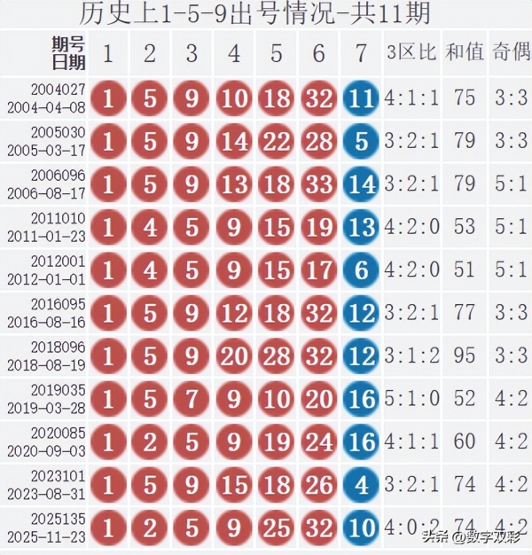 双色球红球含1-5-9历史统计