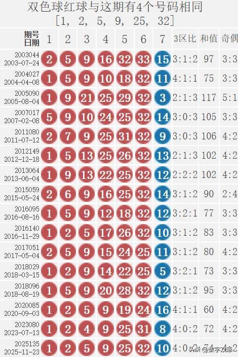 双色球2025135期红号在过去是否出现过?