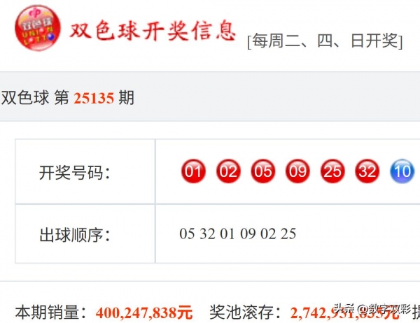 【福彩双色球25135期开奖结果及统计】