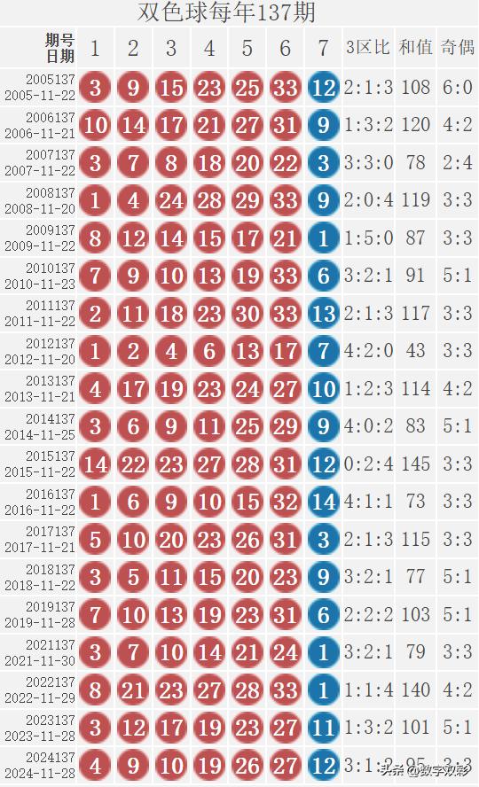 双色球每年137期的出奖号
