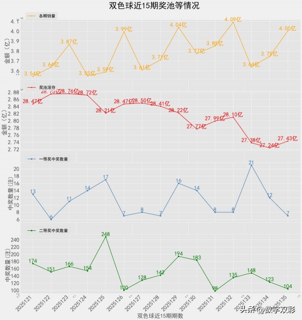 近15期奖池滚存, 中奖情况等信息: