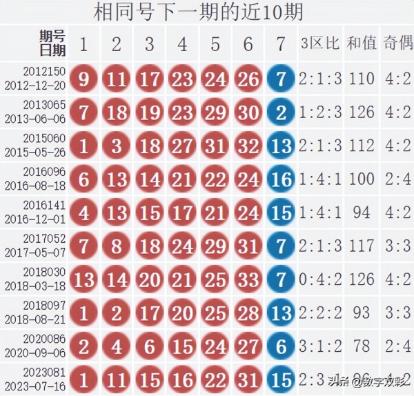 相似号下一期的近10期统计: