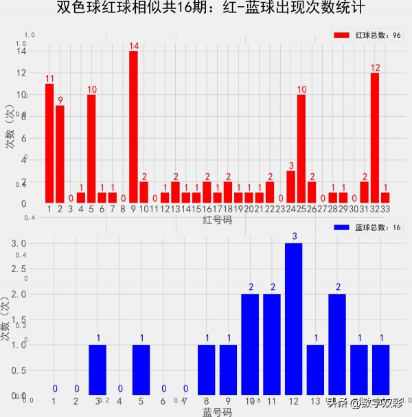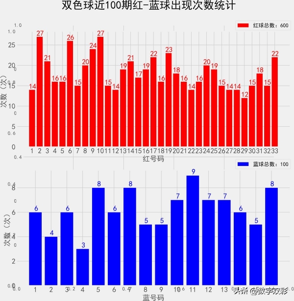 双色球近100期红蓝号统计情况