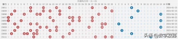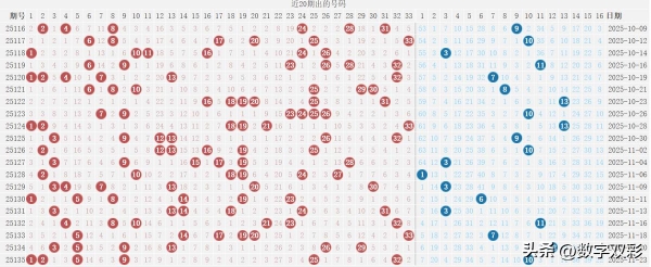 双色球25136期四维走势图,红蓝号统计及冷热号
