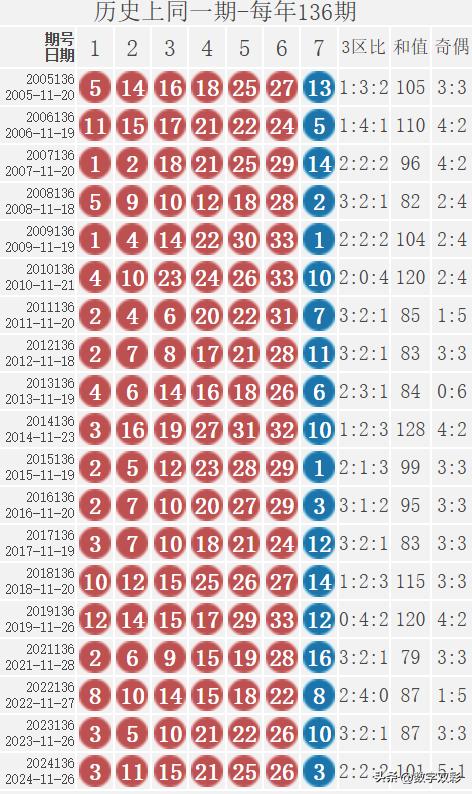 2) 历史同一期: 每年136期 (共19期)