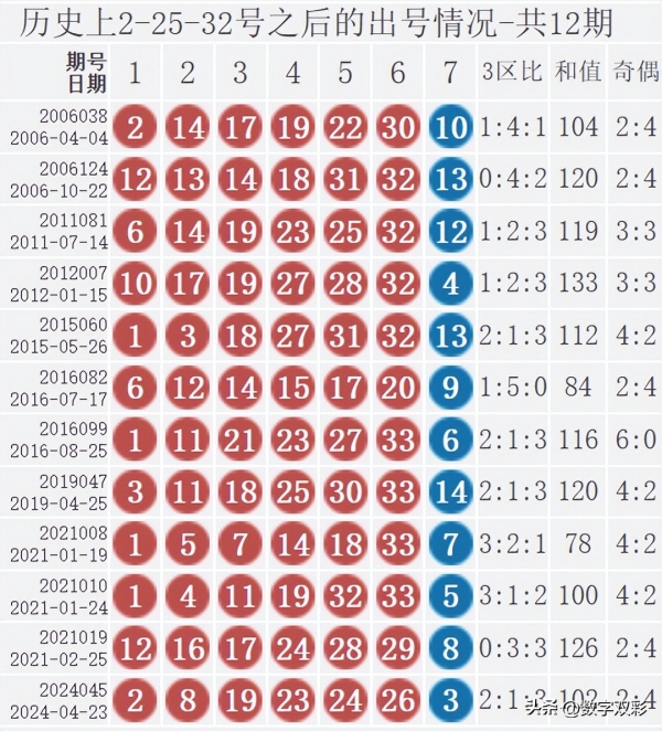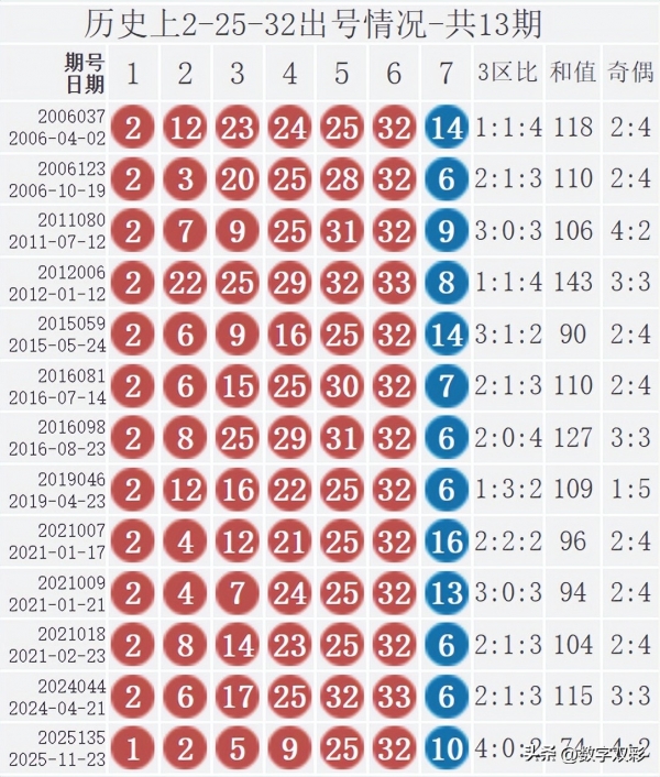 双色球红球含2-25-32历史统计