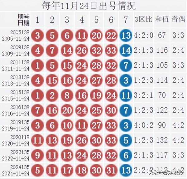 每年11月24日出号情况: