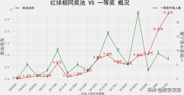 奖池滚存&一等奖数 走势图: