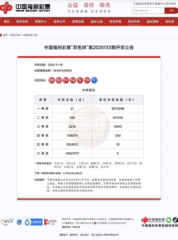 昨晚(11月18日),双色球第25133期开奖结果揭晓,全国彩市再度迎来高光时刻!