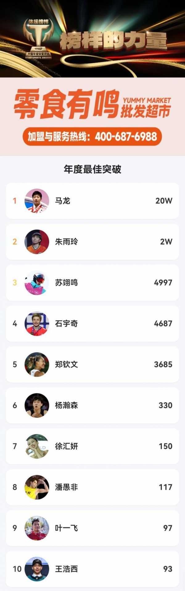 大众评选社交媒体奖项方面,孙颖莎、王楚钦、全红婵成为年度社媒最受欢迎运动员前三名。