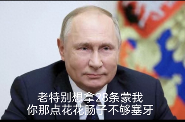 泽连斯基表面上喊委屈,其实他很想停,也是不得不接受条件停。普京是什么人,28条的意谋看不出来,4年前就不会发起特别军事行动,就打不赢这场有欧美支持的战争。就这28条想要迷惑他,特朗普想多了。