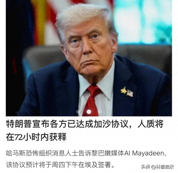 特朗普在此前曾公开表示,正是因为哈马斯在谈判过程中作出了重大让步,双方才得以如此迅速地达成和平协议。