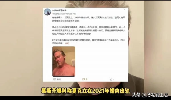 2025年8月,狗仔葛斯齐爆料,夏克立在2021年婚姻存续期间,出轨女儿夏天的L姓女粉丝,两人私密互动不断。离婚后,他又以"免费教英文"为由,与P姓女粉丝发生关系,女方怀孕后,他却以"女经纪人喜欢我""已结扎"等理由推脱责任。