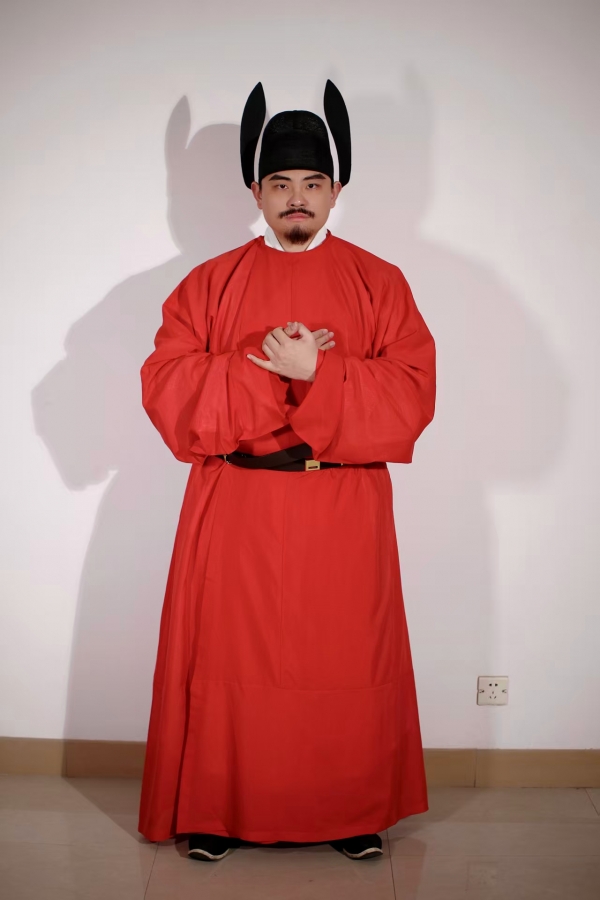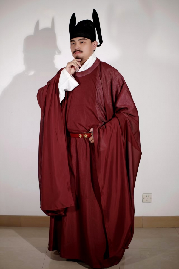 "但三套衣服里,我最喜欢的是这件黑色款。它兼具日常和礼仪形制,在两宋时黑色圆领䙆袍又叫帽衫,是文人士大夫燕居在家的服饰。"郭涛介说。