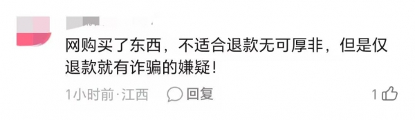网购买了东西,不适合退款无可厚非,但是仅退款就有诈骗的嫌疑!