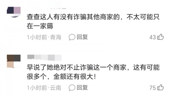 她可能不止诈骗这一个商家,这有可能很多个,不太可能只在一家薅!