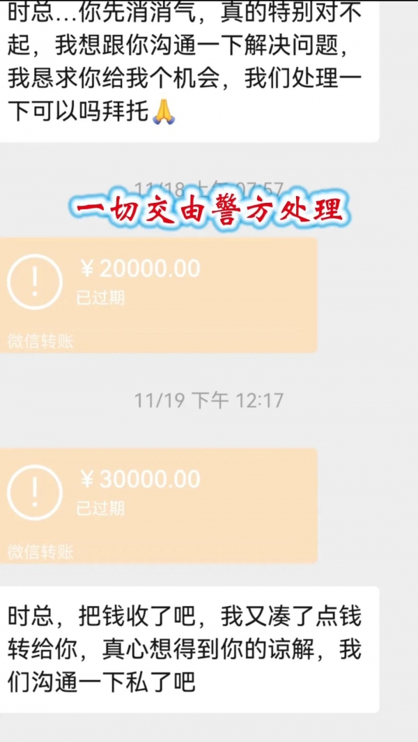 她接连转了2万又3万,说想要沟通解决问题,请求时女士给她个机会。
