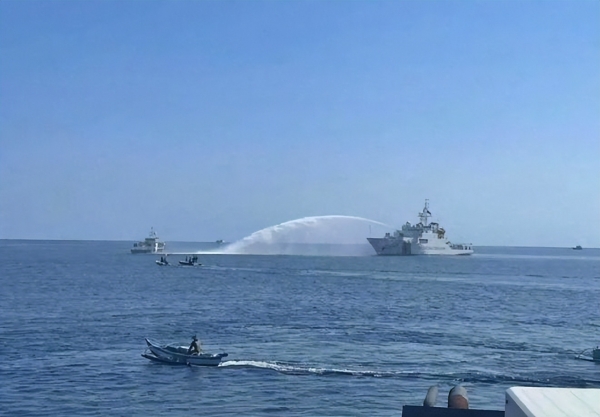南沙群岛刚起波澜,美国那边就坐不住了。10月12日,菲律宾公务船闯进中国控制的铁线礁附近海域,被中国海警用水炮驱离。