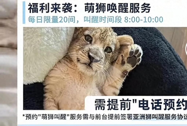 前有隔着玻璃和老虎同寝,现有小狮子叫醒服务,看得出来酒店行业也是越来越卷。