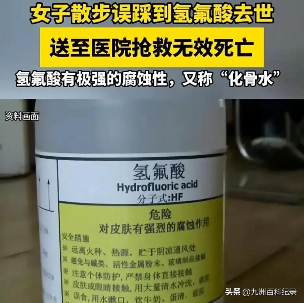 在工业上,氢氟酸用途广泛,常用于刻蚀玻璃、生产半导体、制造塑料和金属加工等。但它有一个可怕的绰号--"化骨水",因为这玩意儿腐蚀性极强,不仅能烧伤皮肤,还能渗透进人体,破坏骨骼和软组织。