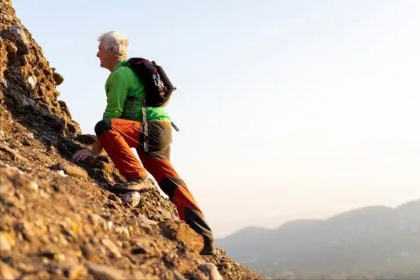 上坡时,膝盖承压增加,尤其是下坡时,冲击力甚至是平地行走的4倍。如果还带着登山杖乱挥舞,反而容易因为支撑不稳扭伤。比起"老人登高健身",更应该注意的是"登高之前,膝盖有没有发出警告?"