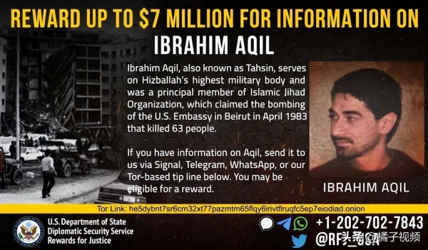 法新社报道称,真主党高级军事指挥官阿基尔(Ibrahim Aqil)因在 1983 年参与美国驻贝鲁特大使馆爆炸案,而被美国以 700 万美元(约 2941 万令吉)悬赏通缉。当年的该大使馆爆炸事件致使 63 人不幸丧生。此外,他还指挥着由伊朗支持的真主党精锐部队 "拉德万部队"。