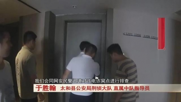 太和县公安局刑侦大队 直属中队指导员 于胜翰:我们会同网安民警迅速对该电诈窝点进行排查,经过大量工作,最终确定该窝点位于开发区某街面商铺内,我们迅速组织警力赶到该窝点,将犯罪嫌疑人刘某、杨某抓获归案。