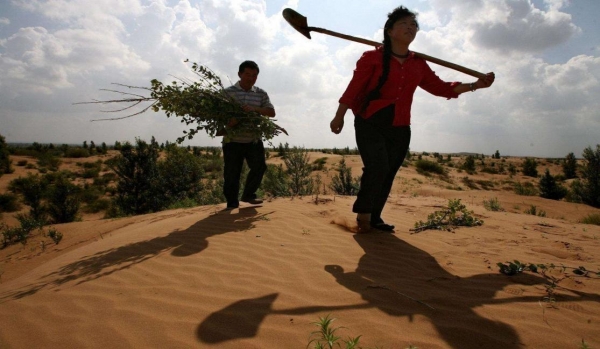 在面对人生困境的时候,接受与改变总得选一样吧,于是她就做了一个大胆的决定,她要与这漫天的风沙死磕到底,用种树来改变沙漠的环境。
