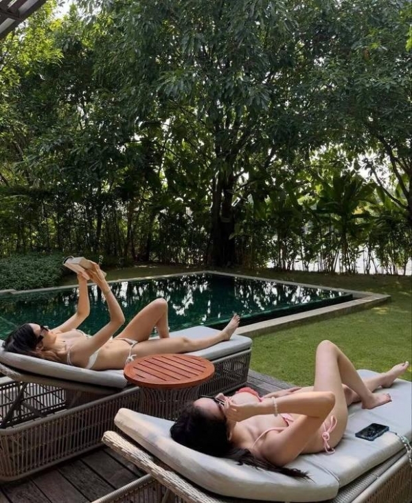 镜头里是比基尼、是躺椅、是沙滩的波纹,她没有摆造型,只是顺势靠下,那种自然被网友形容成"哇噻"。