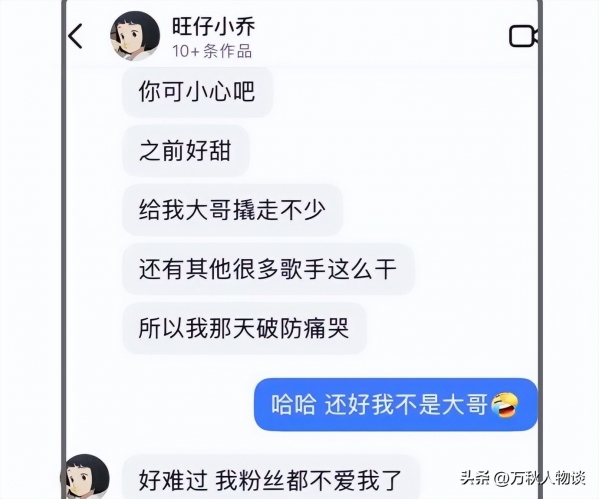 网红旺仔小乔现在可谓是火的不得了,一句"张碧晨是原唱"把汪苏泷和张碧晨的友情撕得粉碎,她自己却拍拍屁股,远离了这场风波,甚至还扮演上受害者了,结果还没等她得意多久,她的"榜一大哥"就下场撕他了。