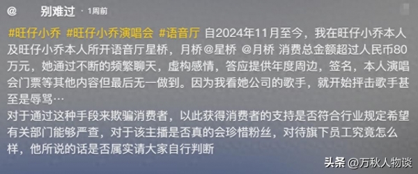 任何一件高价"商品",都需要强有力的品牌背书,旺仔小乔曾是响当当的名字,坐拥两千多万粉丝,风光无限,她的流量是底气,是信任的基石,然而这80万交易的前前后后,是她亲手把这块金字招牌拆得稀烂,像一座大厦,根基被掏空。
