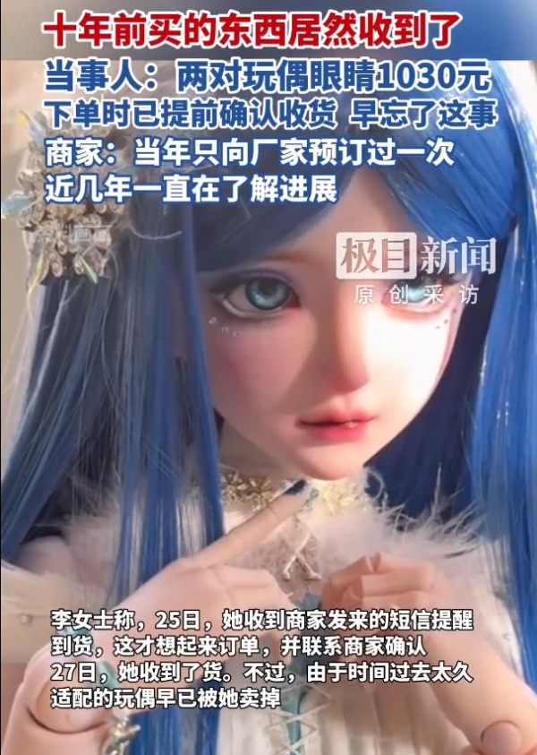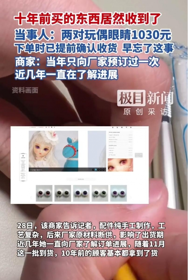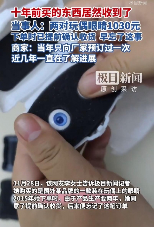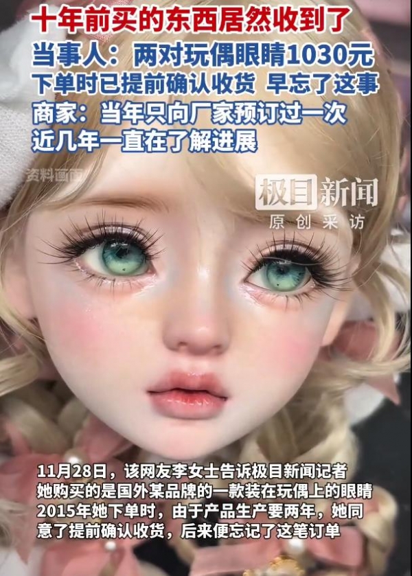 可问题是已经过去十年了,玩偶早没了,眼睛现在才来,到底是哪个环节出了问题?是商家太拖拉,还是另有隐情?