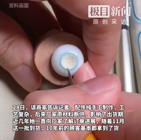 这眼睛是国外手工工坊制作的,纯手工一对一烧制,工艺很麻烦,失败率还特别高,她说:"那时候订单多,厂家做得慢,我们也没办法催。"