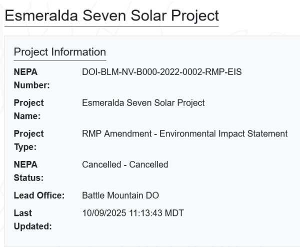 然而,根据美国土地管理局网站在本周四更新的信息,该太阳能电站项目现已被标记为"取消"。