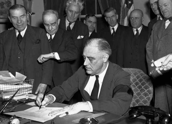 在下一届总统选举中,罗斯福以压倒性优势连任总统之位,在第二次上位之后,就爆发了第二次世界大战。
