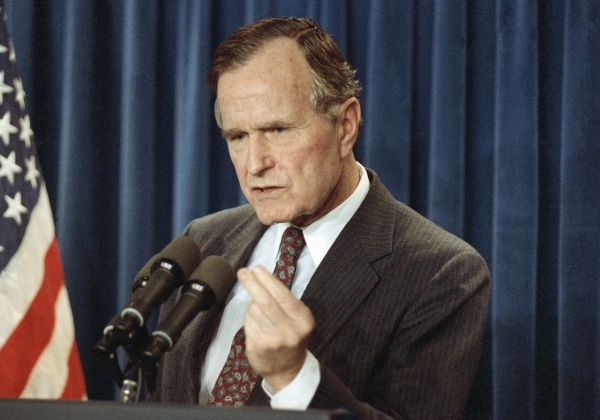 在其执政期间,亲眼目睹了庞大苏联的解体,也发动了震惊世界的海湾战争,提出了建立"世界新秩序"的主张。