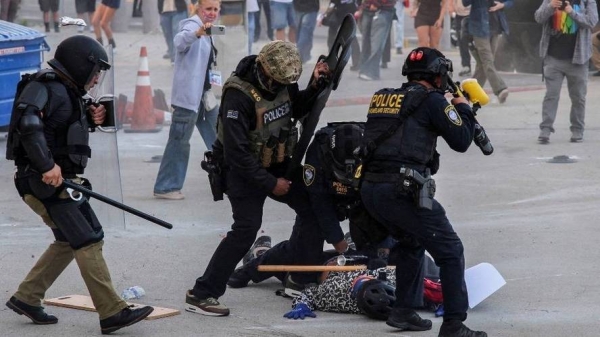 达拉斯警方最初在社交平台上发帖称,警察不会干预"表达第一修正案权利的个人或团体进行合法、和平的集会",但随后警方介入。有媒体报道称,当警察使用胡椒喷雾和烟雾清场时,看到人群中有人投掷物品,至少1人被捕。
