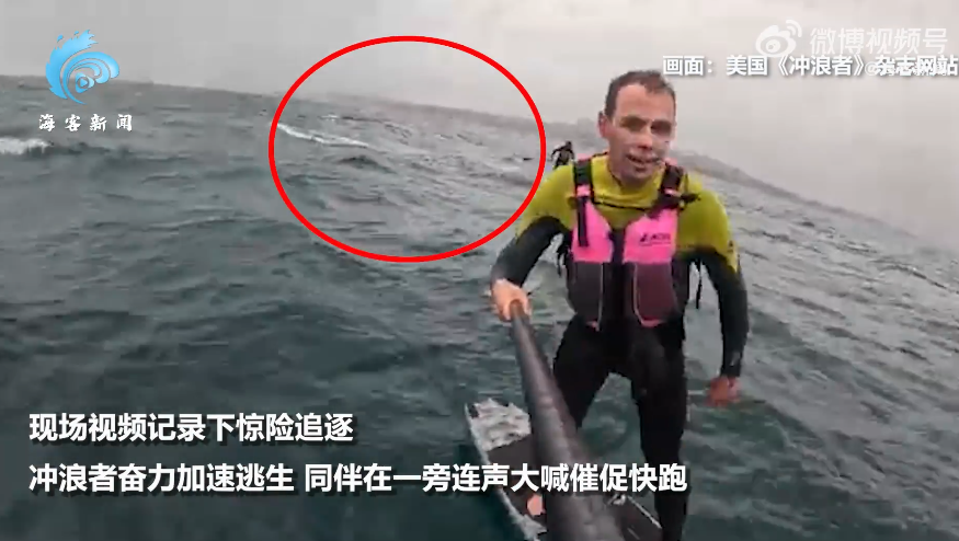 事发时,这名冲浪者察觉异常回头,立刻询问同伴那是不是鲨鱼,持相机的同伴随即提醒他别摔倒。现场视频记录下惊险追逐,冲浪者奋力加速逃生,同伴在一旁连声大喊催促快跑,鲨鱼步步紧逼,冲浪者转向、加速,鲨鱼都同步紧随,最终鲨鱼停止追击,同伴在距离目的地还有约19.3公里时接应到这位冲浪者。