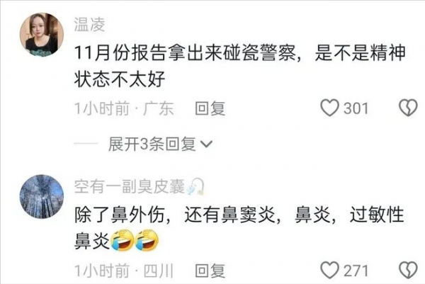 "11月份的报告拿出来碰瓷警 察,是不是精神状态不太好?"