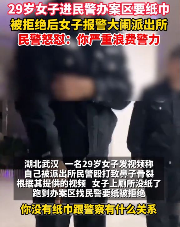 首先,从这件事的起因来说,女子上厕所不带纸,找警 察本来就不对。